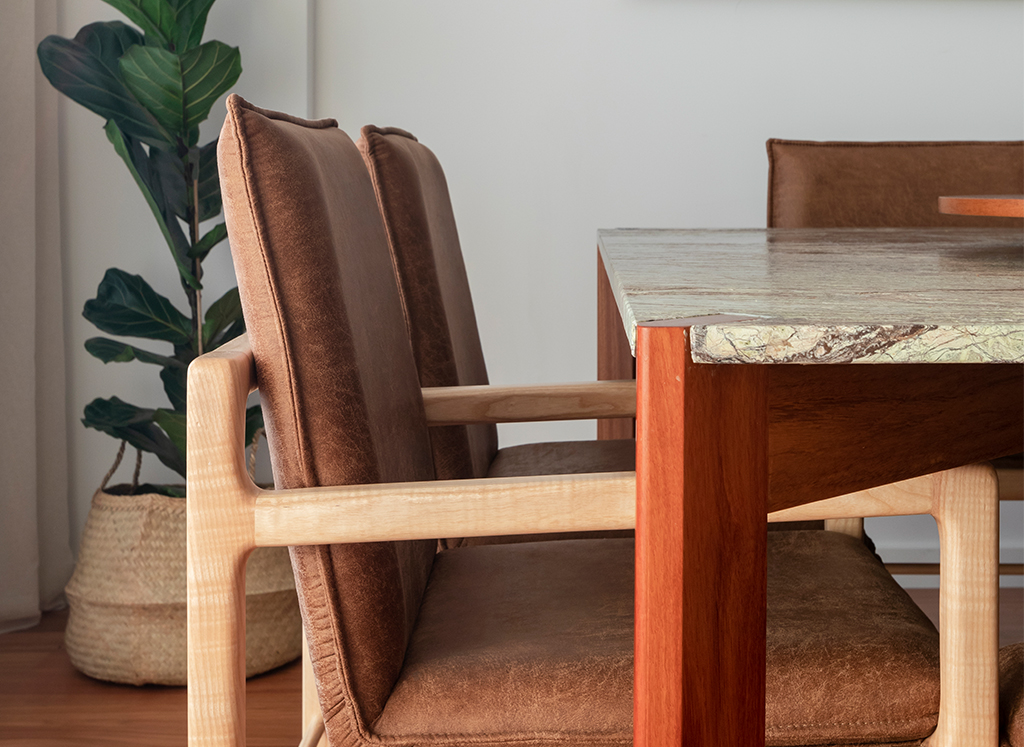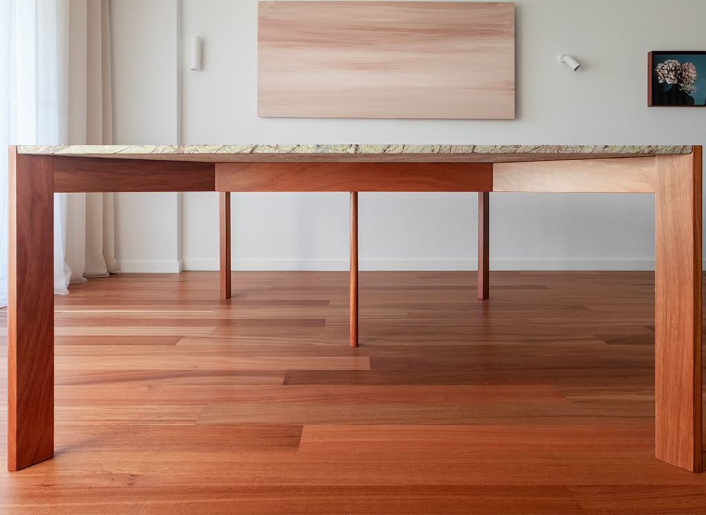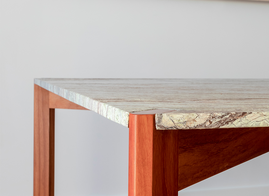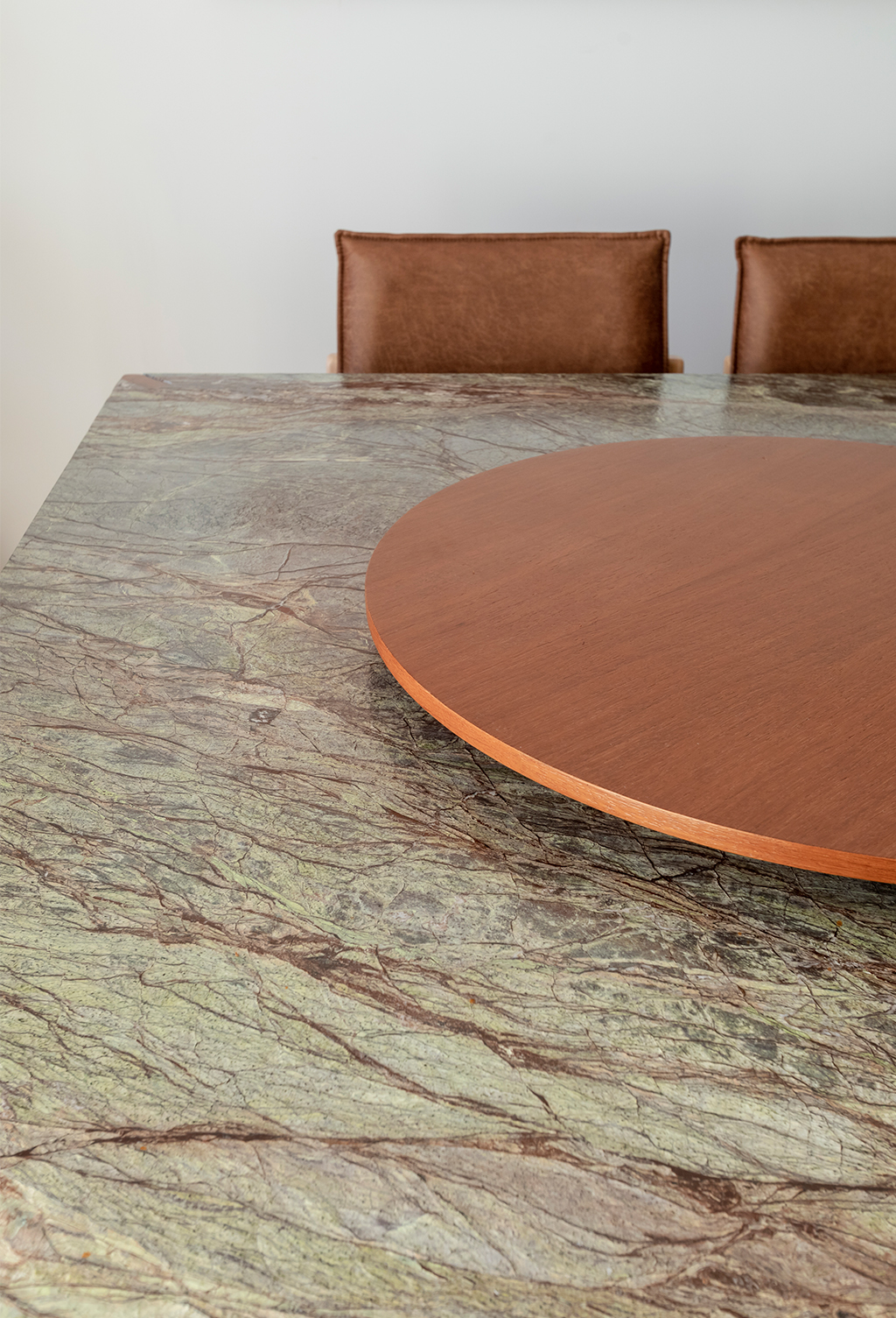 Pés em madeira Afzélia e Tampo de marmore Forest Green