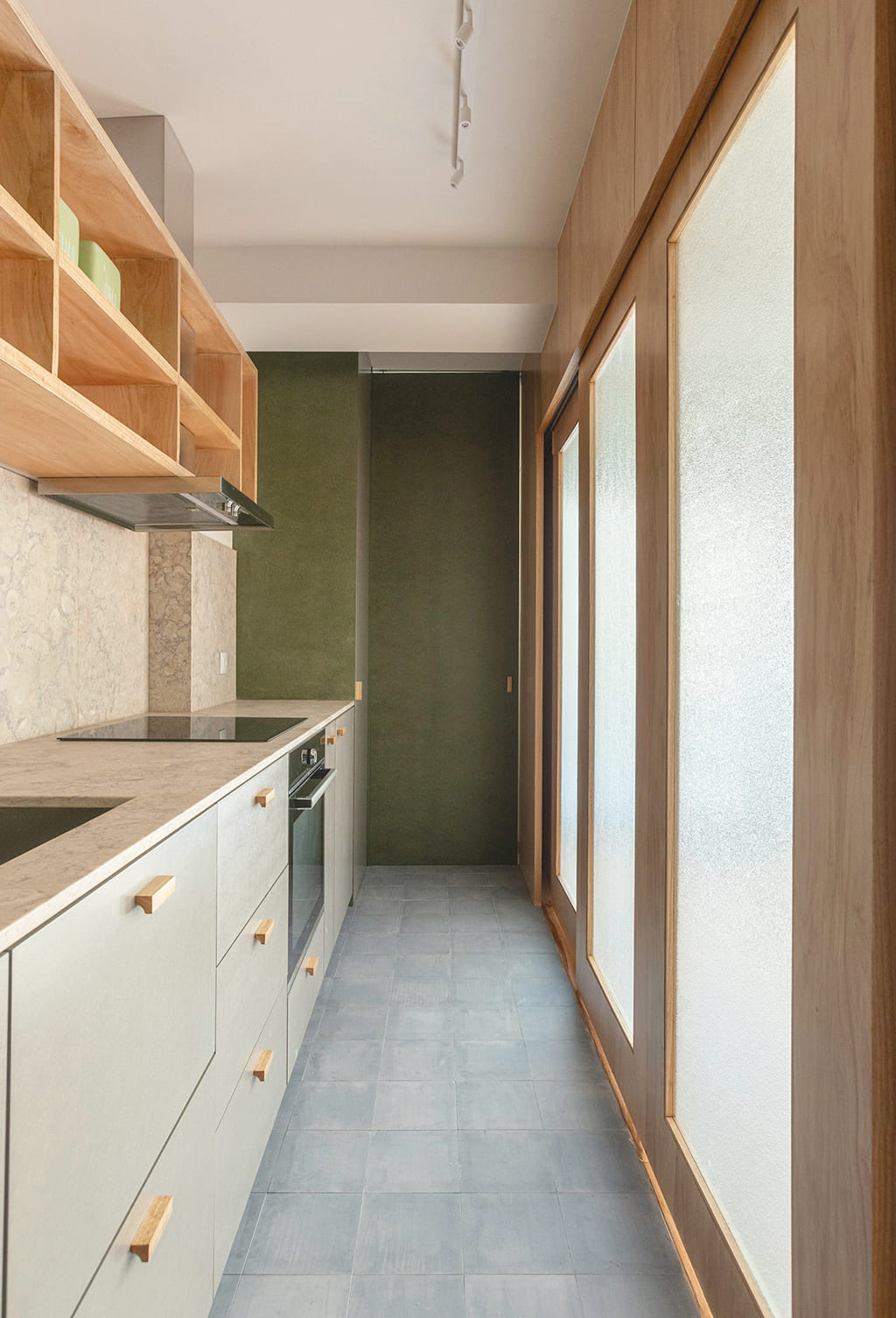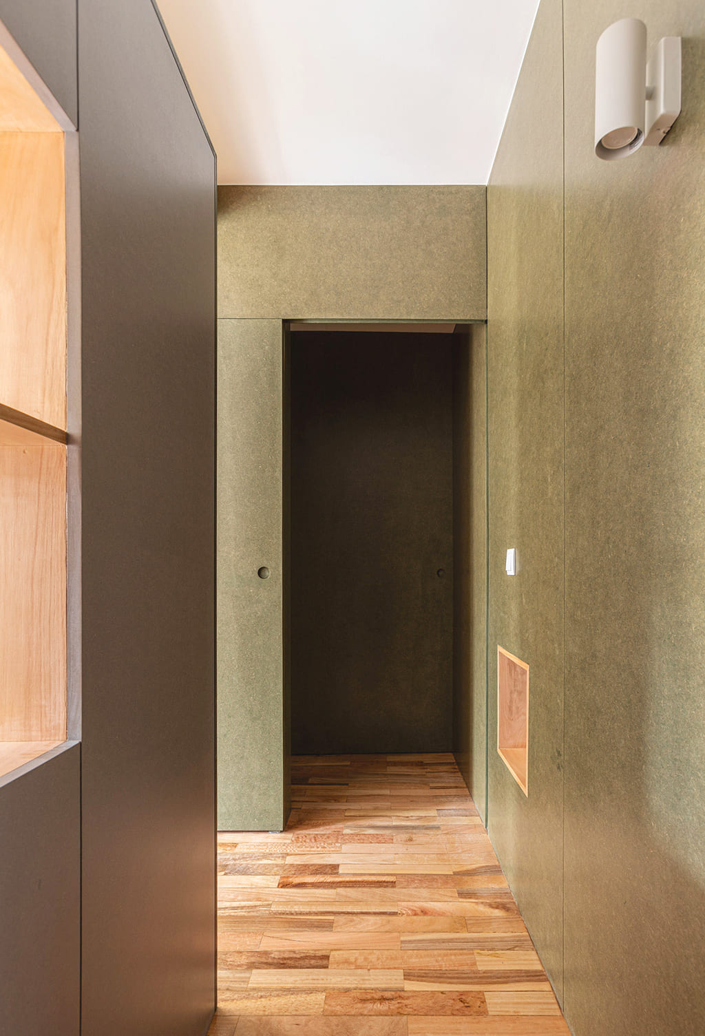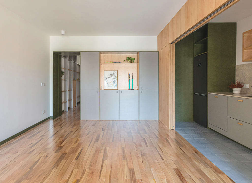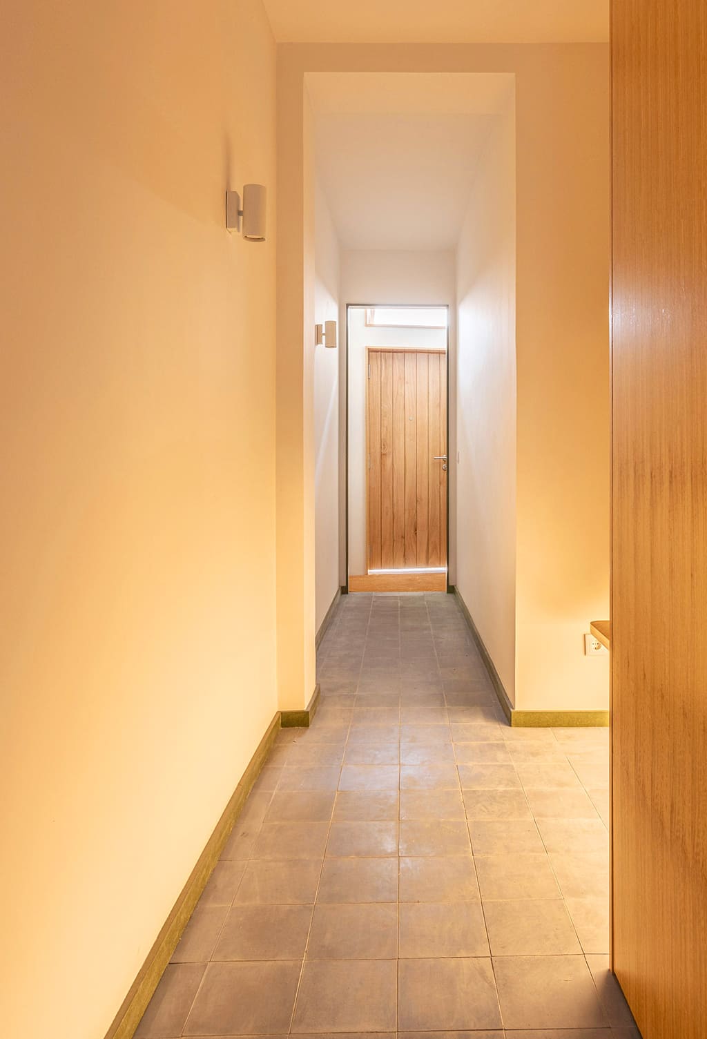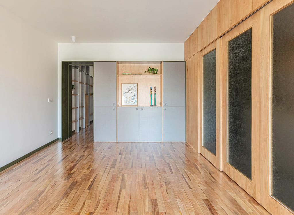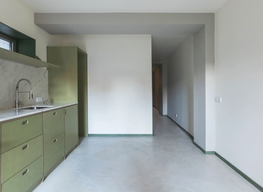 De um prédio vazio de seis pequenos apartamentos, ampliaram-se os espaços e reduziram-se as famílias para duas. Com a proporção da obra de reabilitação e a necessidade de controle de custos, a premissa que deu a cara ao projeto foi a escolha de materiais no seu estado puro. Materiais sem pinturas, nem máscaras, onde as cores e texturas se destacam, em linhas continuas que interligam os espaços, harmoniosamente, dando também lugar à intimidade e resguardo do habitar.
