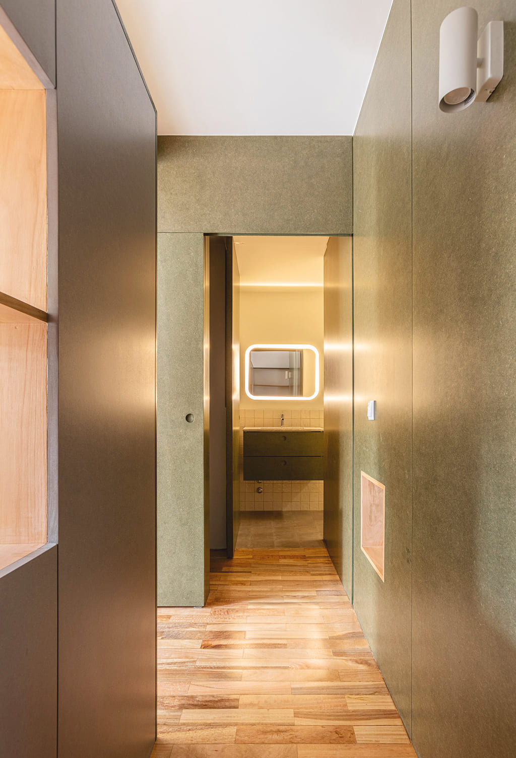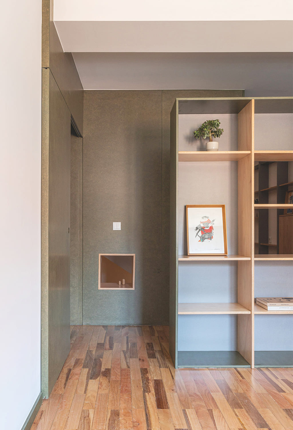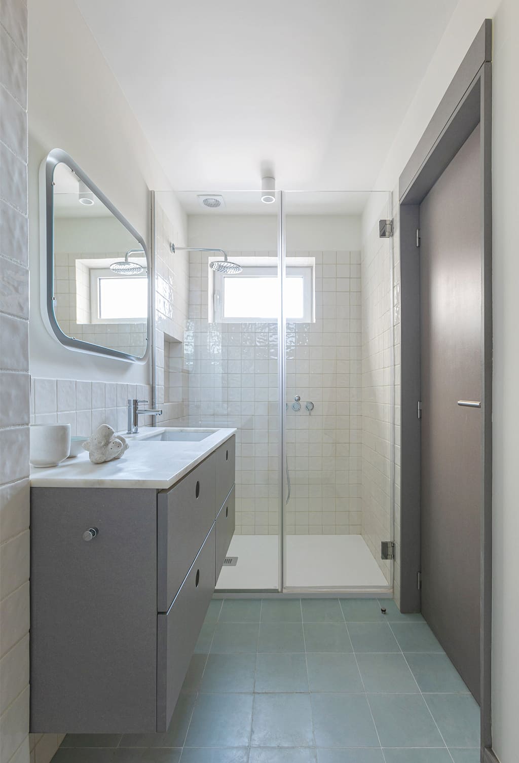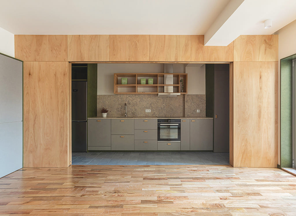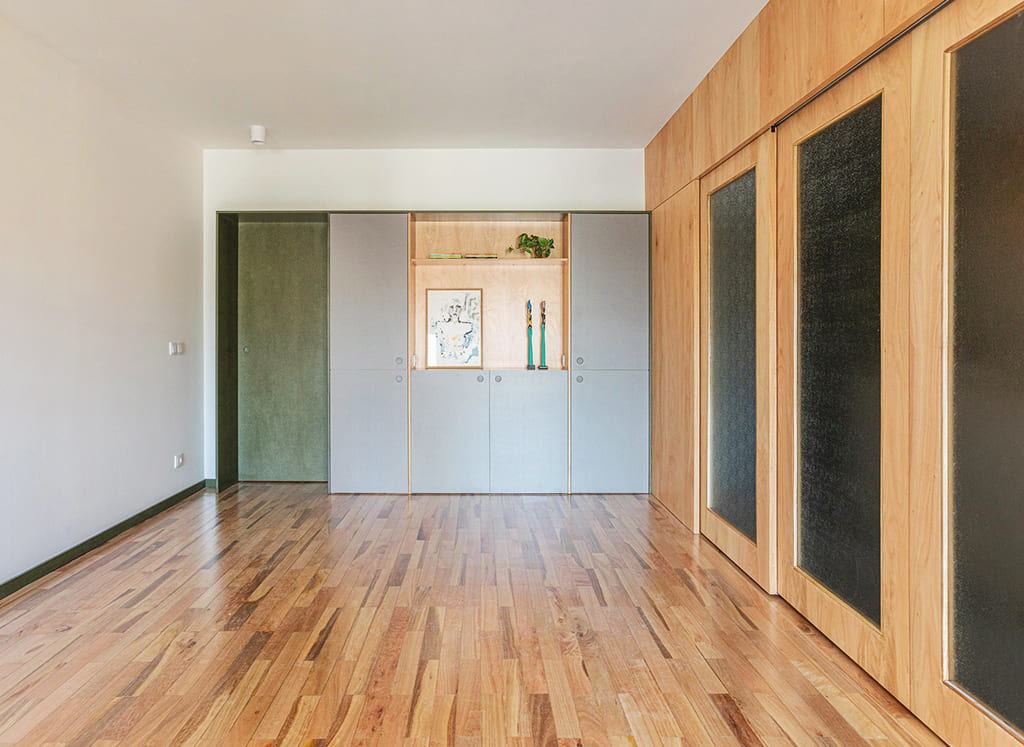 De um prédio vazio de seis pequenos apartamentos, ampliaram-se os espaços e reduziram-se as famílias para duas. Com a proporção da obra de reabilitação e a necessidade de controle de custos, a premissa que deu a cara ao projeto foi a escolha de materiais no seu estado puro. Materiais sem pinturas, nem máscaras, onde as cores e texturas se destacam, em linhas continuas que interligam os espaços, harmoniosamente, dando também lugar à intimidade e resguardo do habitar.