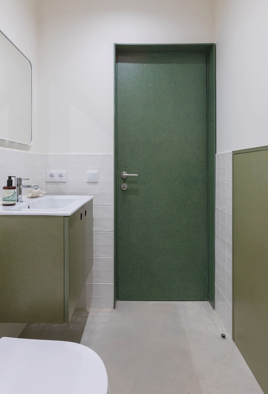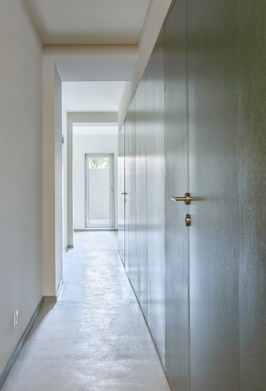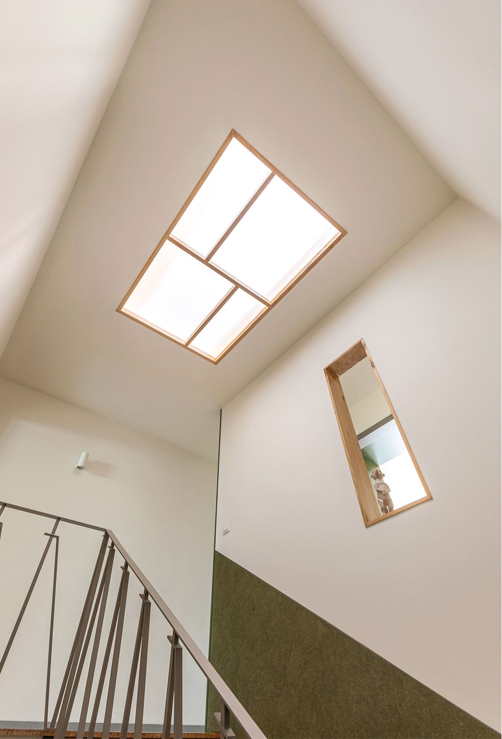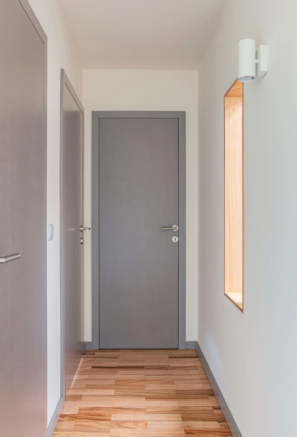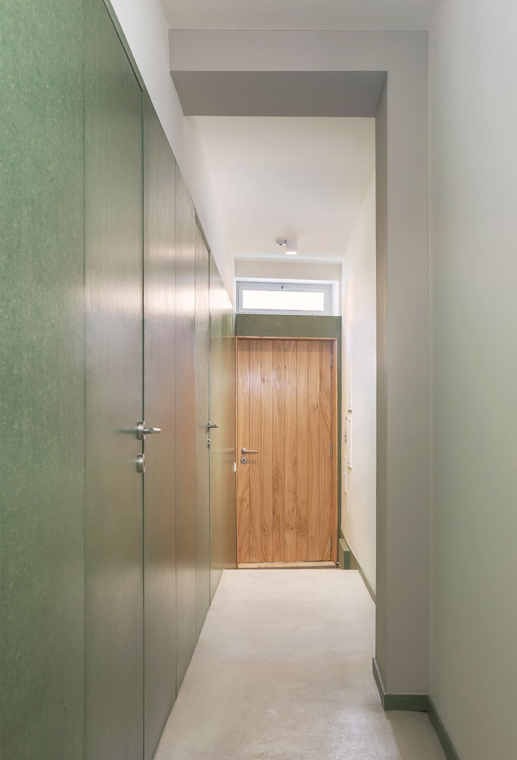 De um prédio vazio de seis pequenos apartamentos, ampliaram-se os espaços e reduziram-se as famílias para duas. Com a proporção da obra de reabilitação e a necessidade de controle de custos, a premissa que deu a cara ao projeto foi a escolha de materiais no seu estado puro. Materiais sem pinturas, nem máscaras, onde as cores e texturas se destacam, em linhas continuas que interligam os espaços, harmoniosamente, dando também lugar à intimidade e resguardo do habitar.