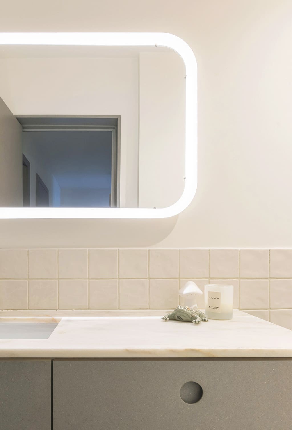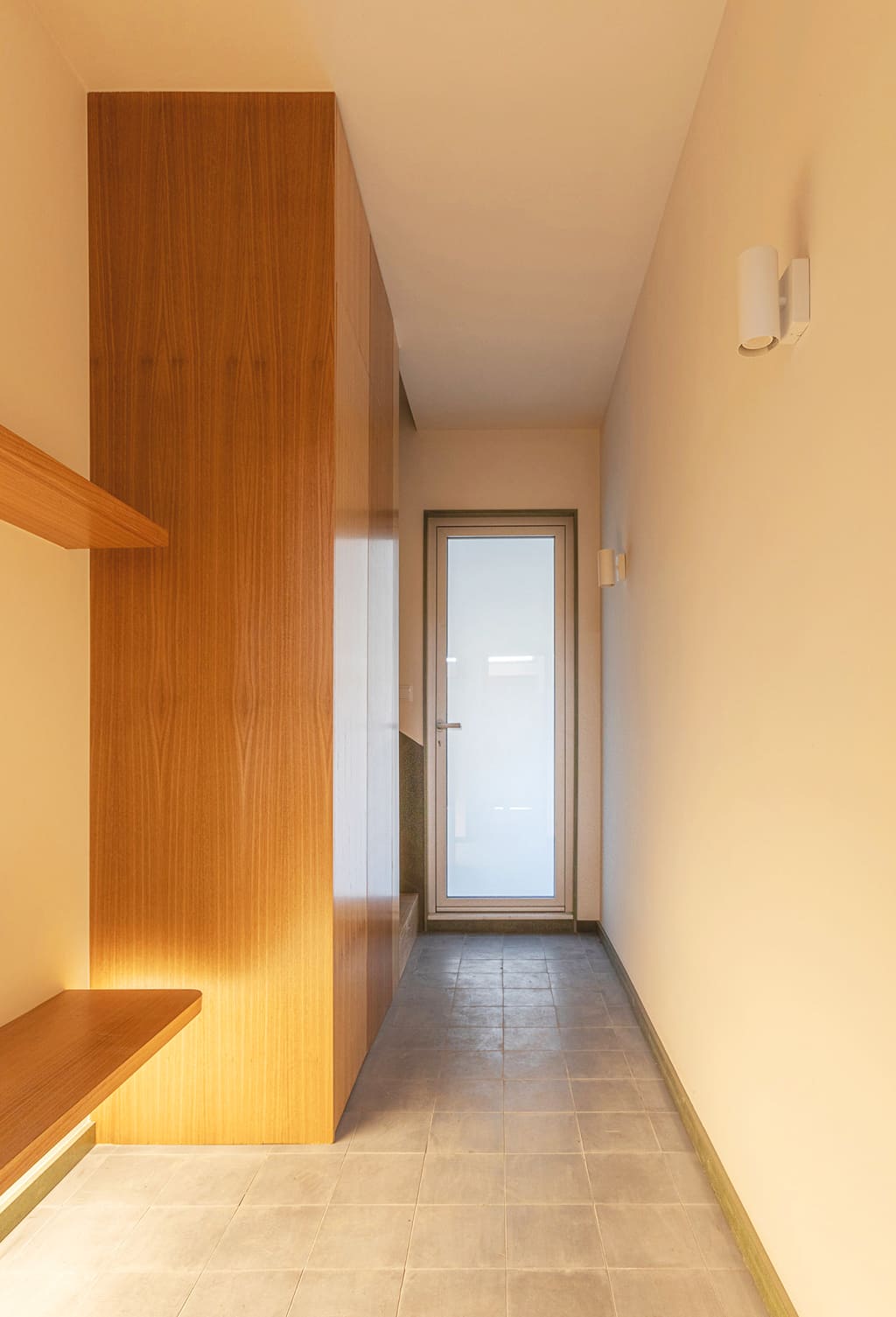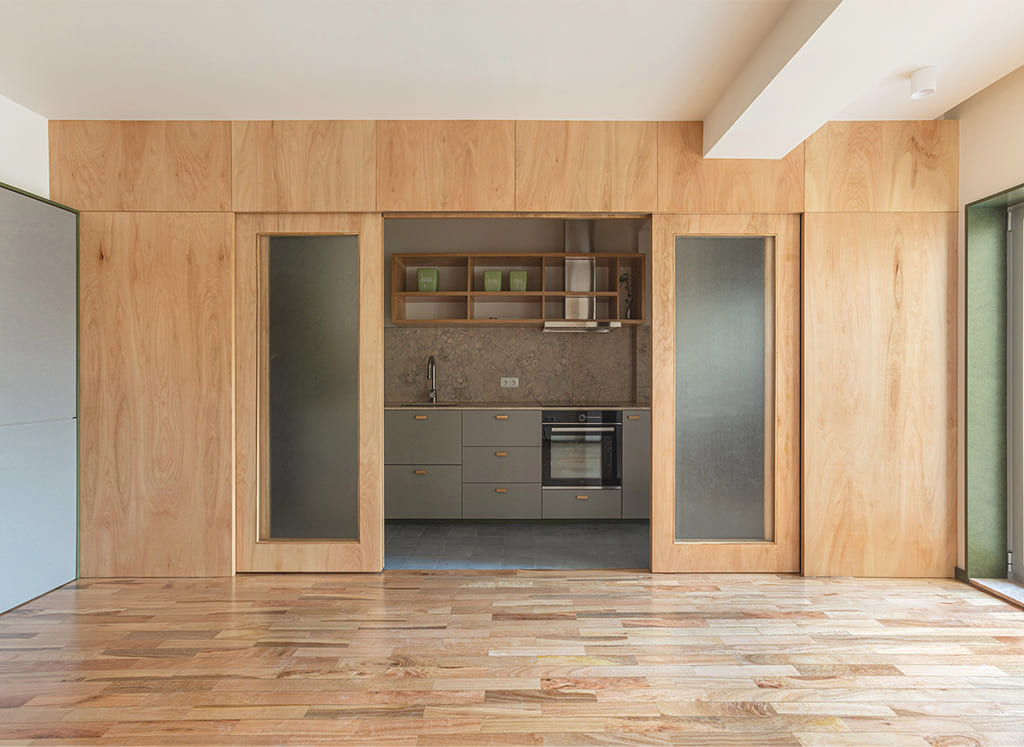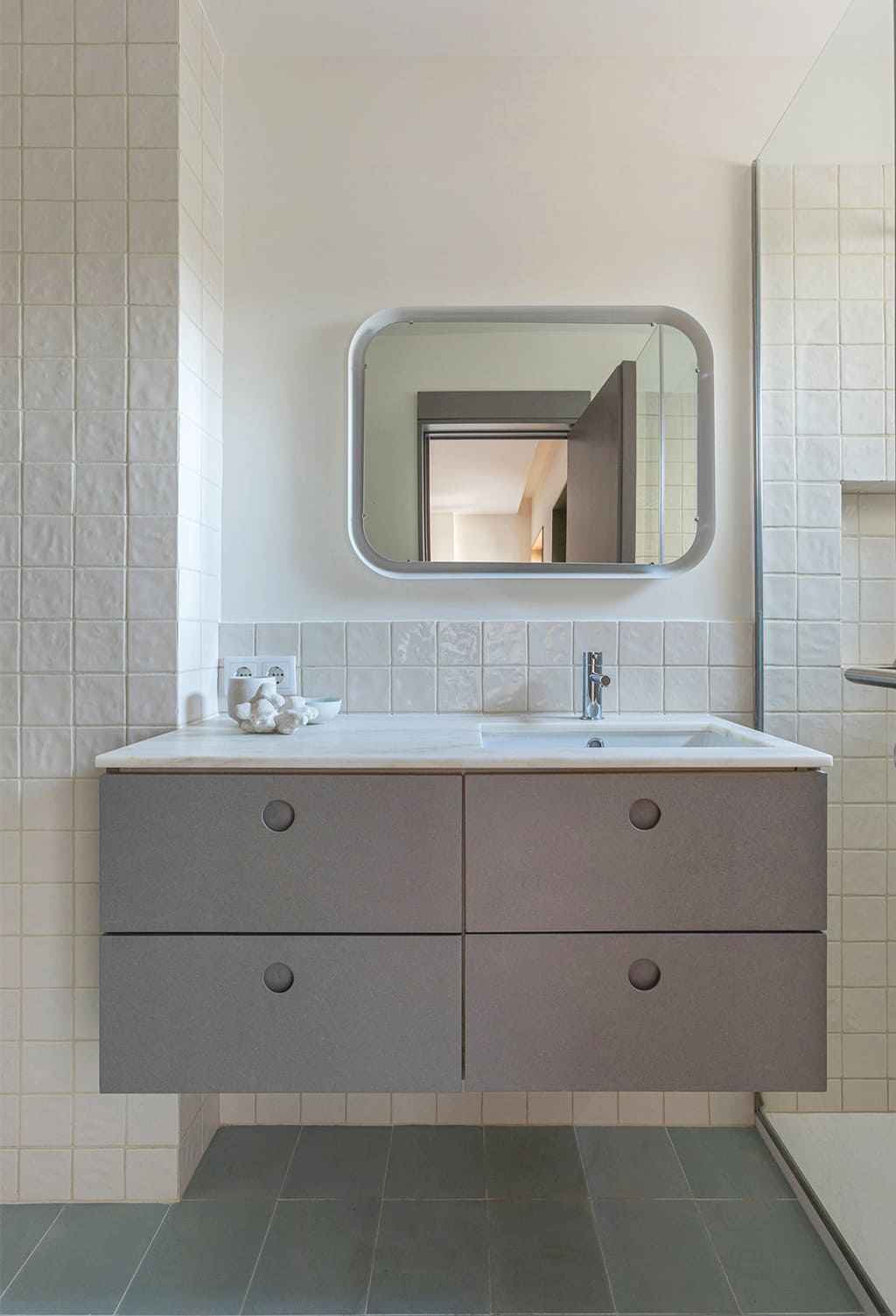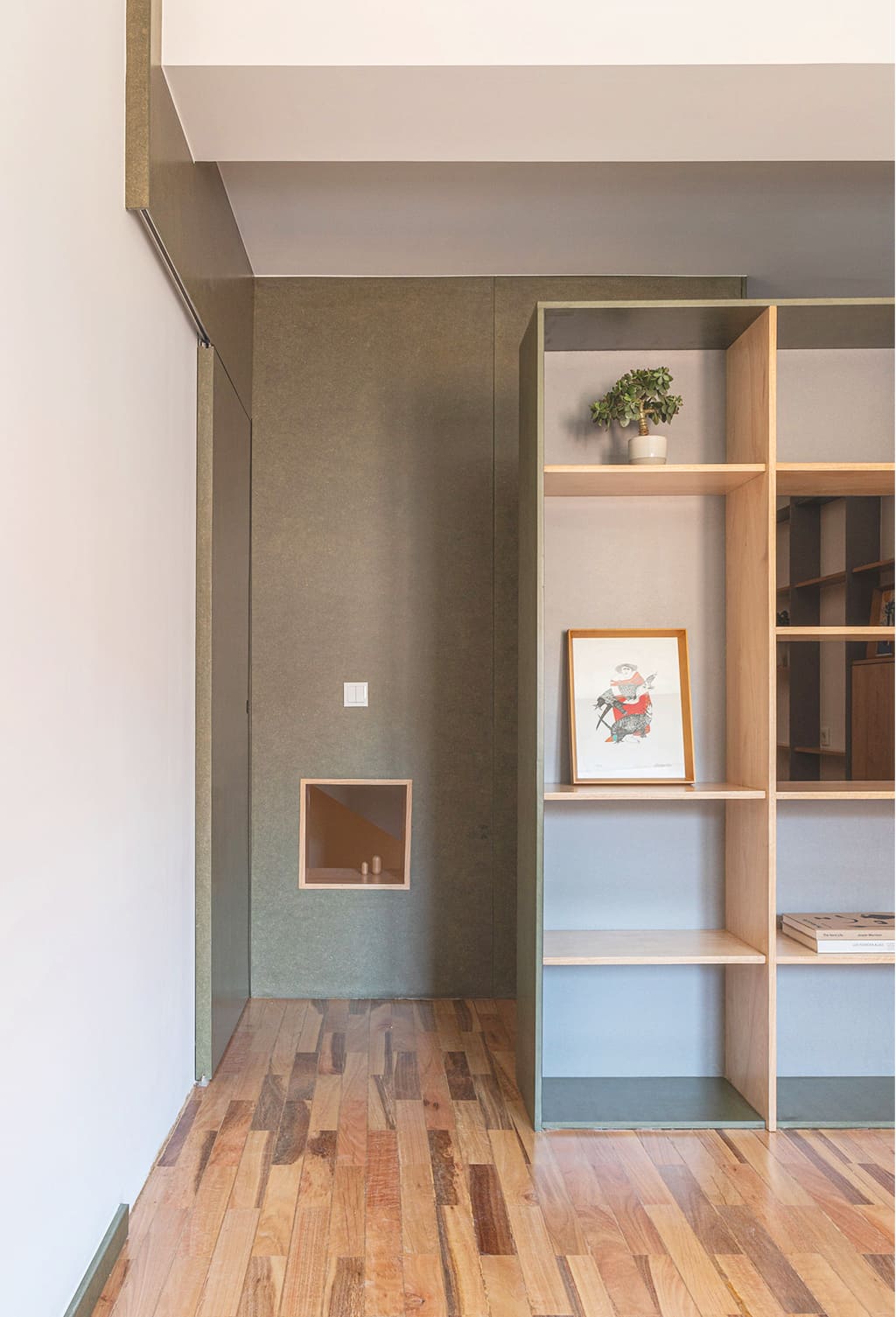 De um prédio vazio de seis pequenos apartamentos, ampliaram-se os espaços e reduziram-se as famílias para duas. Com a proporção da obra de reabilitação e a necessidade de controle de custos, a premissa que deu a cara ao projeto foi a escolha de materiais no seu estado puro. Materiais sem pinturas, nem máscaras, onde as cores e texturas se destacam, em linhas continuas que interligam os espaços, harmoniosamente, dando também lugar à intimidade e resguardo do habitar.